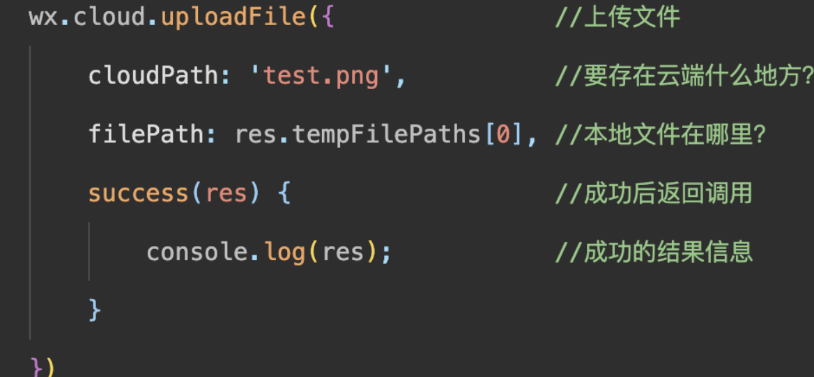 再深一步,如果你的微信小程序想存储一些文件,也可以直接使用云开发接口,调用上传文件,文件可以同时被小程序端和云函数端获取到,方便应用功能的开发,举例如下: