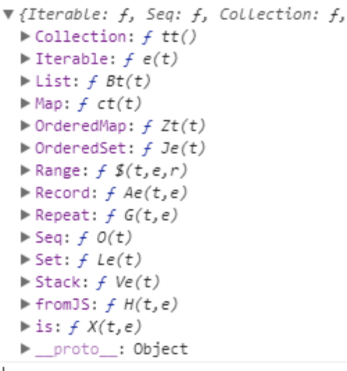 List: 有序索引集,类似JavaScript中的Array。Map: 无序索引集,类似JavaScript中的Object。OrderedMap: 有序的Map,根据数据的set()进行排序。Set: 没有重复值的集合。OrderedSet: 有序的Set,根据数据的add进行排序。Stack: 有序集合,支持使用unshift()和shift()添加和删除。Range(): 返回一个Seq.Indexed类型的集合,这个方法有三个参数,start表示开始值,默认值为0,end表示结束值,默认为无穷大,step代表每次增大的数值,默认为1.如果start = end,则返回空集合。Repeat(): 返回一个vSeq.Indexe类型的集合,这个方法有两个参数,value代表需要重复的值,times代表要重复的次数,默认为无穷大。Record: 一个用于生成Record实例的类。类似于JavaScript的Object,但是只接收特定字符串为key,具有默认值。Seq: 序列,但是可能不能由具体的数据结构支持。Collection: 是构建所有数据结构的基类,不可以直接构建