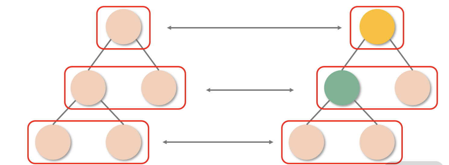 结合“DOM 节点之间的跨层级操作并不多,同层级操作是主流”这一规律,React 的 Diff 过程直接放弃了跨层级的节点比较,它只针对相同层级的节点作对比,如下图所示。这样一来,只需要从上到下的一次遍历,就可以完成对整棵树的对比,这是降低复杂度量级方面的一个最重要的设计。