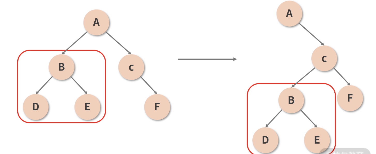 那么如果真的发生了跨层级的节点操作(比如将以 B 节点为根节点的子树从 A 节点下面移动到 C 节点下面,如下图所示)会怎样呢?很遗憾,作为“次要矛盾”,在这种情况下 React 并不能够判断出“移动”这个行为,它只能机械地认为移出子树那一层的组件消失了,对应子树需要被销毁;而移入子树的那一层新增了一个组件,需要重新为其创建一棵子树。