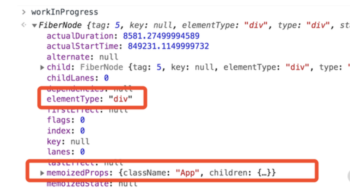对于挂载过程来说,我们唯一要做的就是把 App 组件挂载到界面上去,因此 App 后代节点们的 effectList 其实都是不存在的。effectList 只有在 App 的父节点(rootFiber)这才不为空。