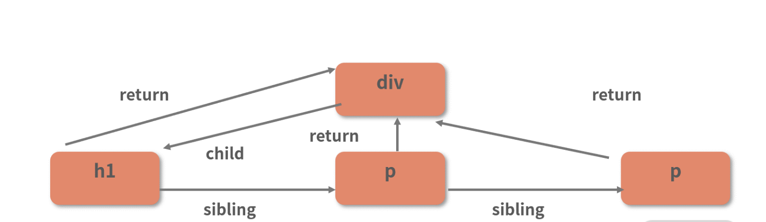 结合前面的分析和图示可知,h1 节点是递归过程中所触及的第一个叶子节点,也是其兄弟节点中被遍历到的第一个节点;而剩下的两个 p 节点,此时都还没有被遍历到,也就是说连 beginWork 都没有执行过。