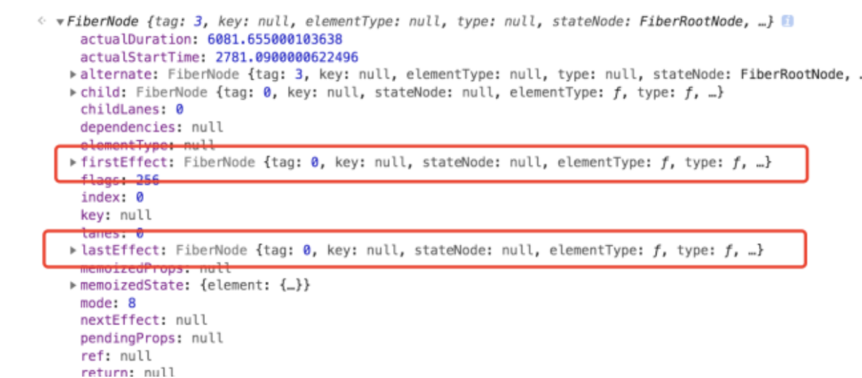 其中 firstEffect 表示 effectList 的第一个节点,而 lastEffect 则记录最后一个节点。