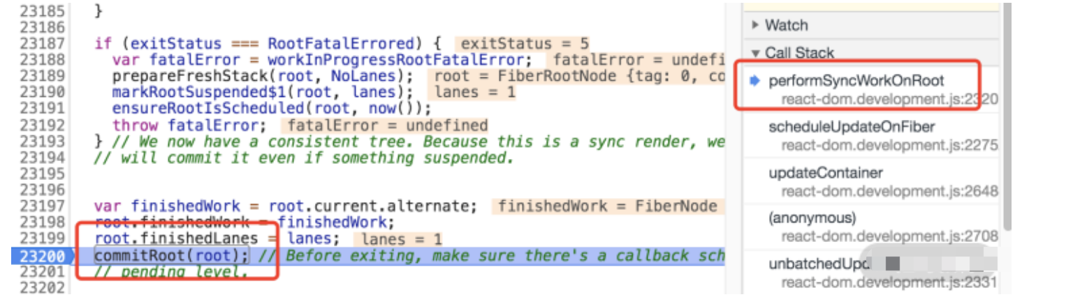 commit 会在 performSyncWorkOnRoot 中被调用,如下图所示: