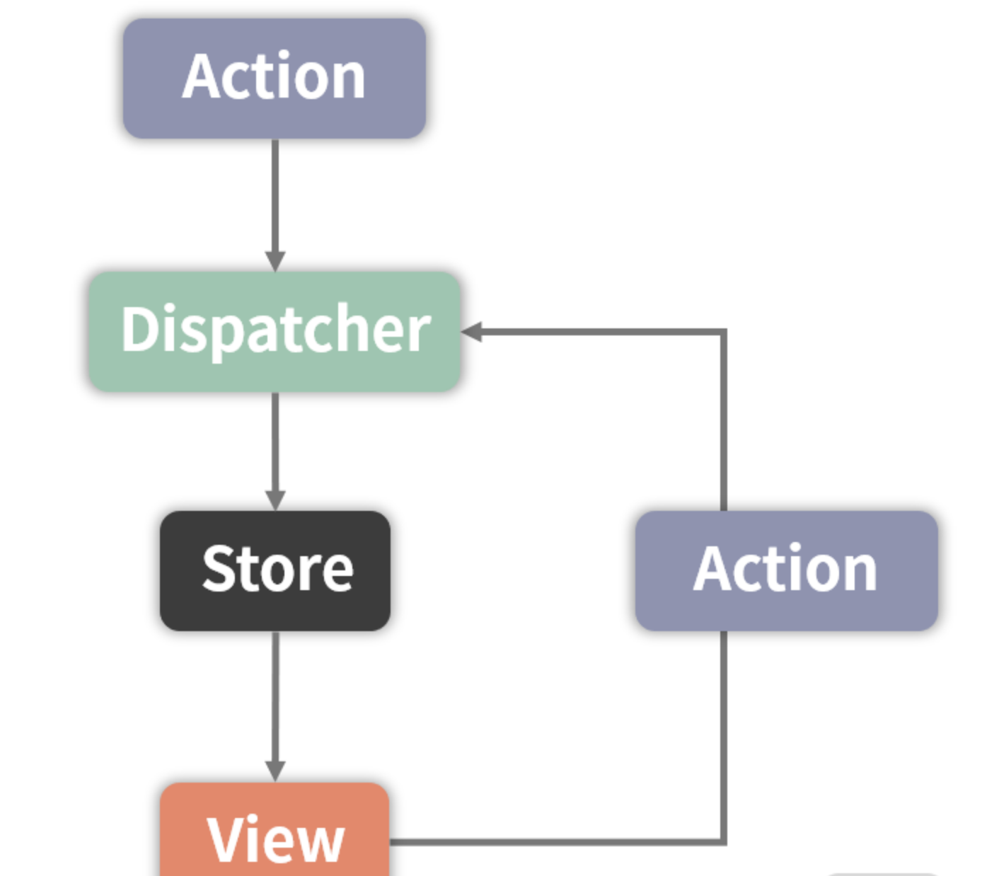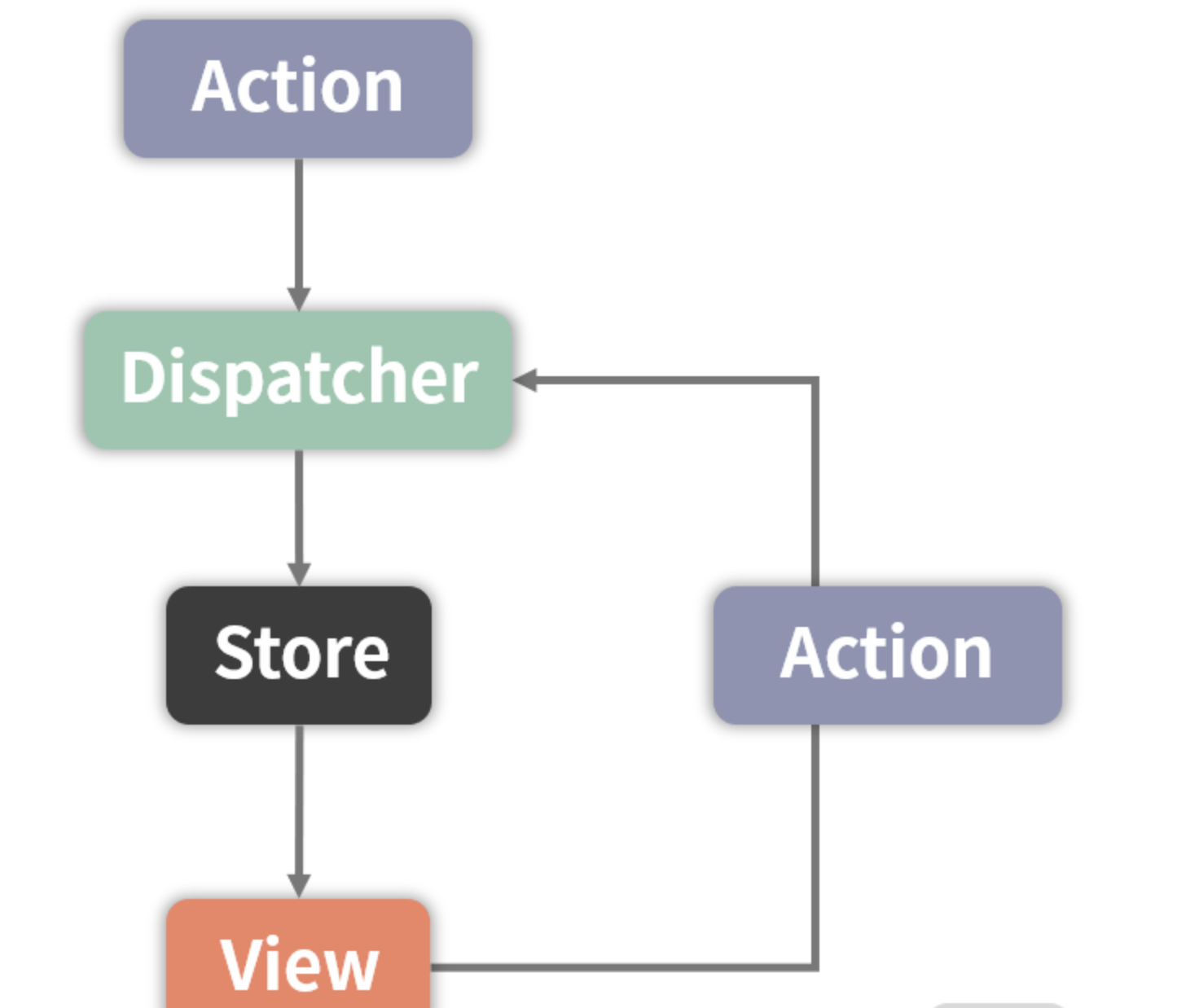 • View(视图层):用户界面。该用户界面可以是以任何形式实现出来的,React 组件是一种形式,Vue、Angular 也完全 OK。Flux 架构与 React 之间并不存在耦合关系。