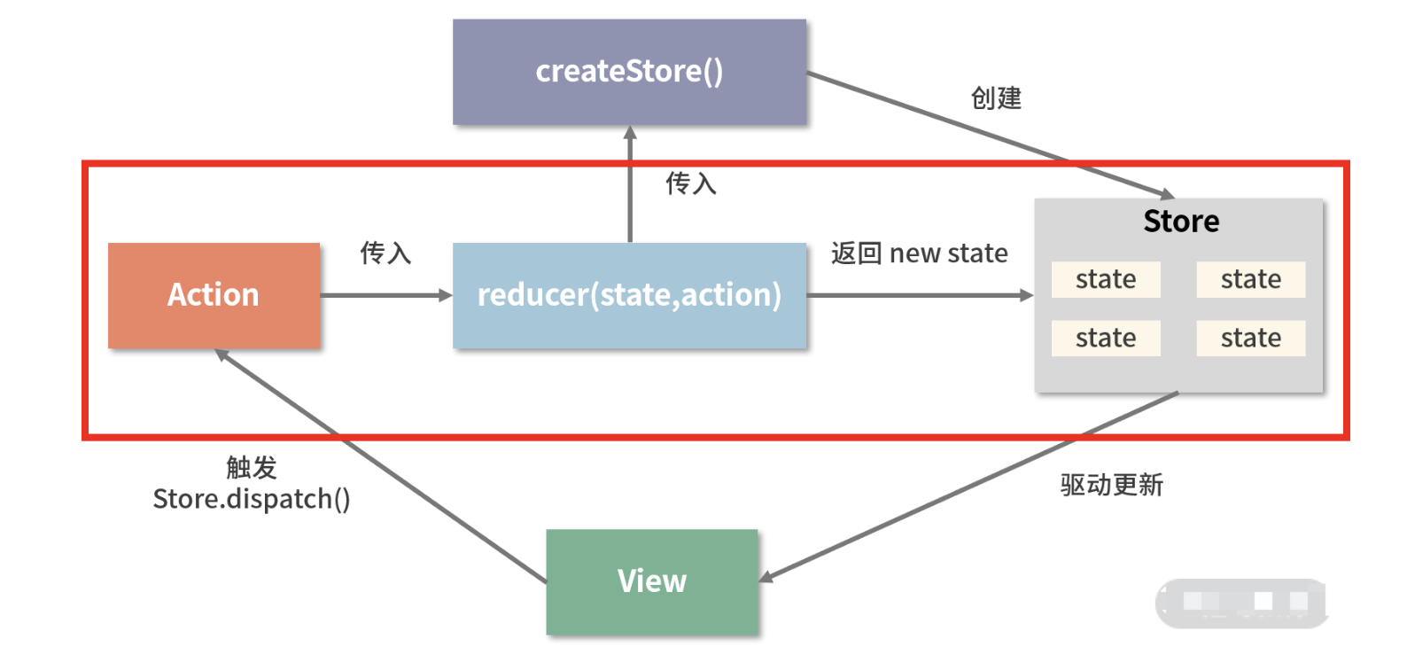 Redux 主要由 3 部分组成:Store、Reducer 和 Action