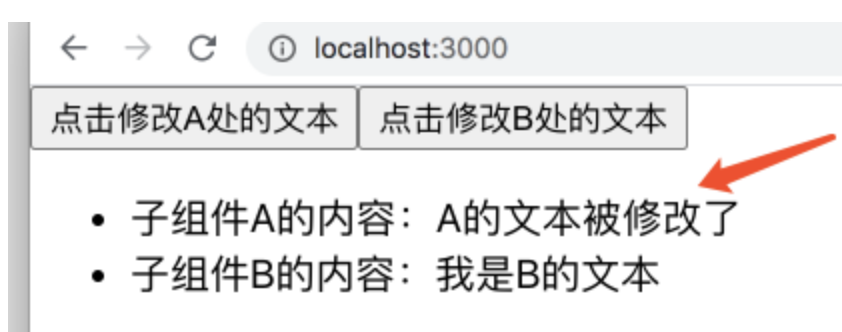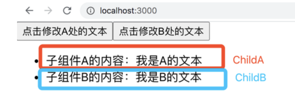 通过点击左右两个按钮,我们可以分别对 ChildA 和 ChildB 中的文案进行修改。