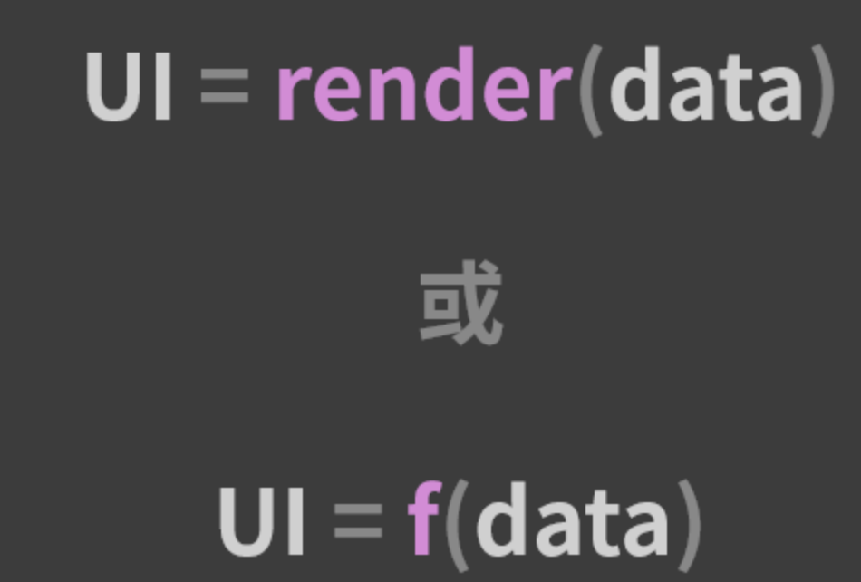 为什么要这样做?别忘了,React 的核心特征是“数据驱动视图”,我们经常用下图的公式来表达它的工作模式: