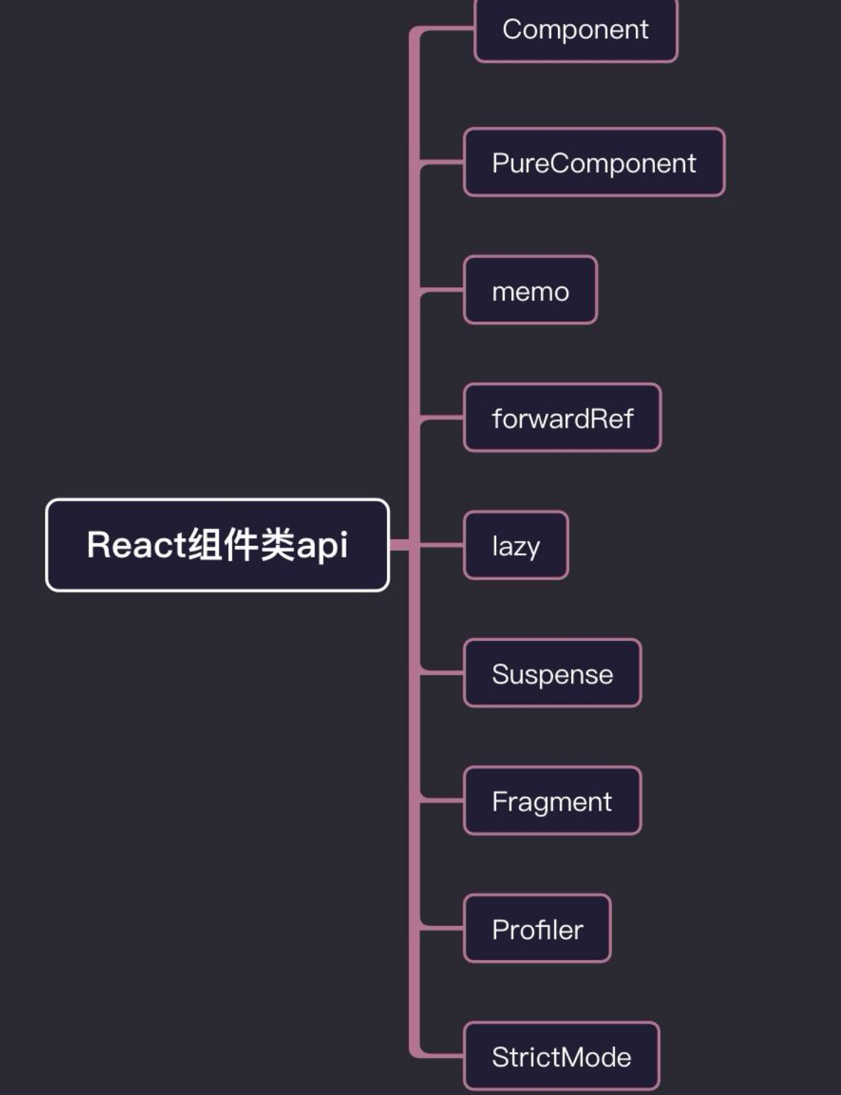 组件类,详细分的话有三种类,第一类说白了就是我平时用于继承的基类组件Component,PureComponent,还有就是react提供的内置的组件,比如Fragment,StrictMode,另一部分就是高阶组件forwardRef,memo等。