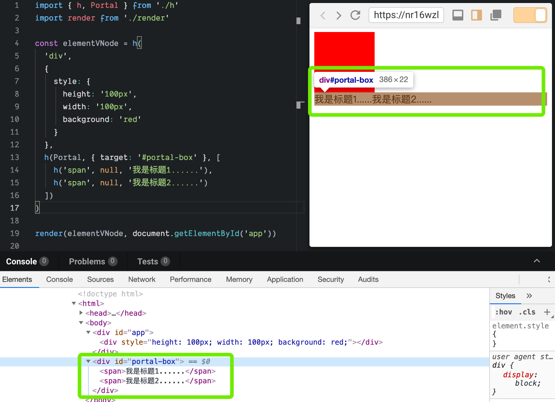 h(Portal, { target: '#portal-box' }, [