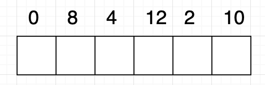 [ 0, 8, 4, 12, 2, 10 ]