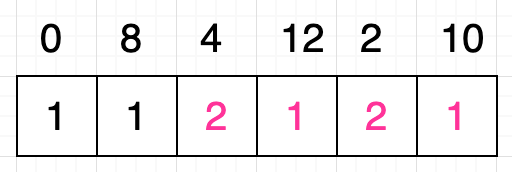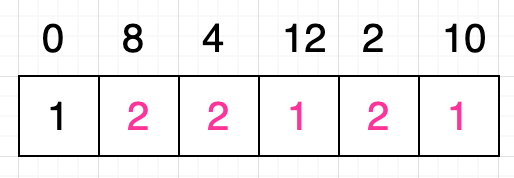 例如给定数值序列为:[ 0, 8, 4, 12 ]