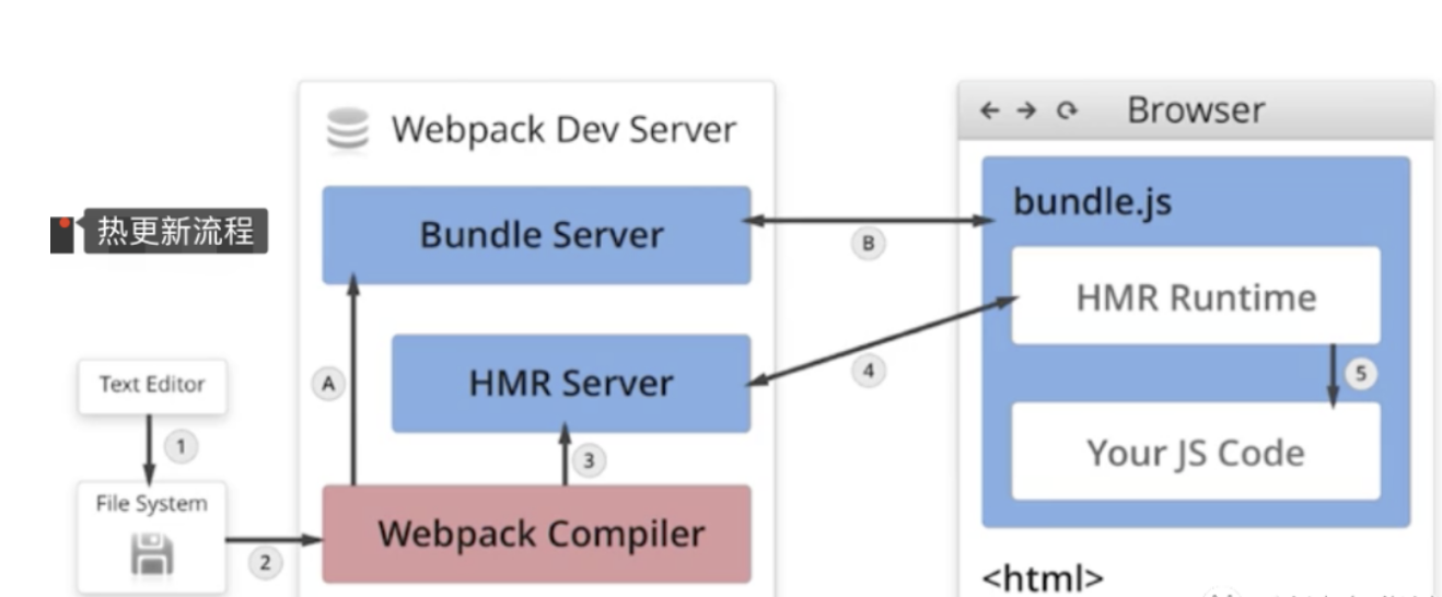 webpack; webpack重新编译构建一个或多个模块,并通知 HMR 服务器进行更新;HMR Server使用webSocket通知HMR runtime需要更新,HMR运行时通过HTTP请求更新jsonpHMR运行时替换更新中的模块,如果确定这些模块无法更新,则触发整个页面刷新